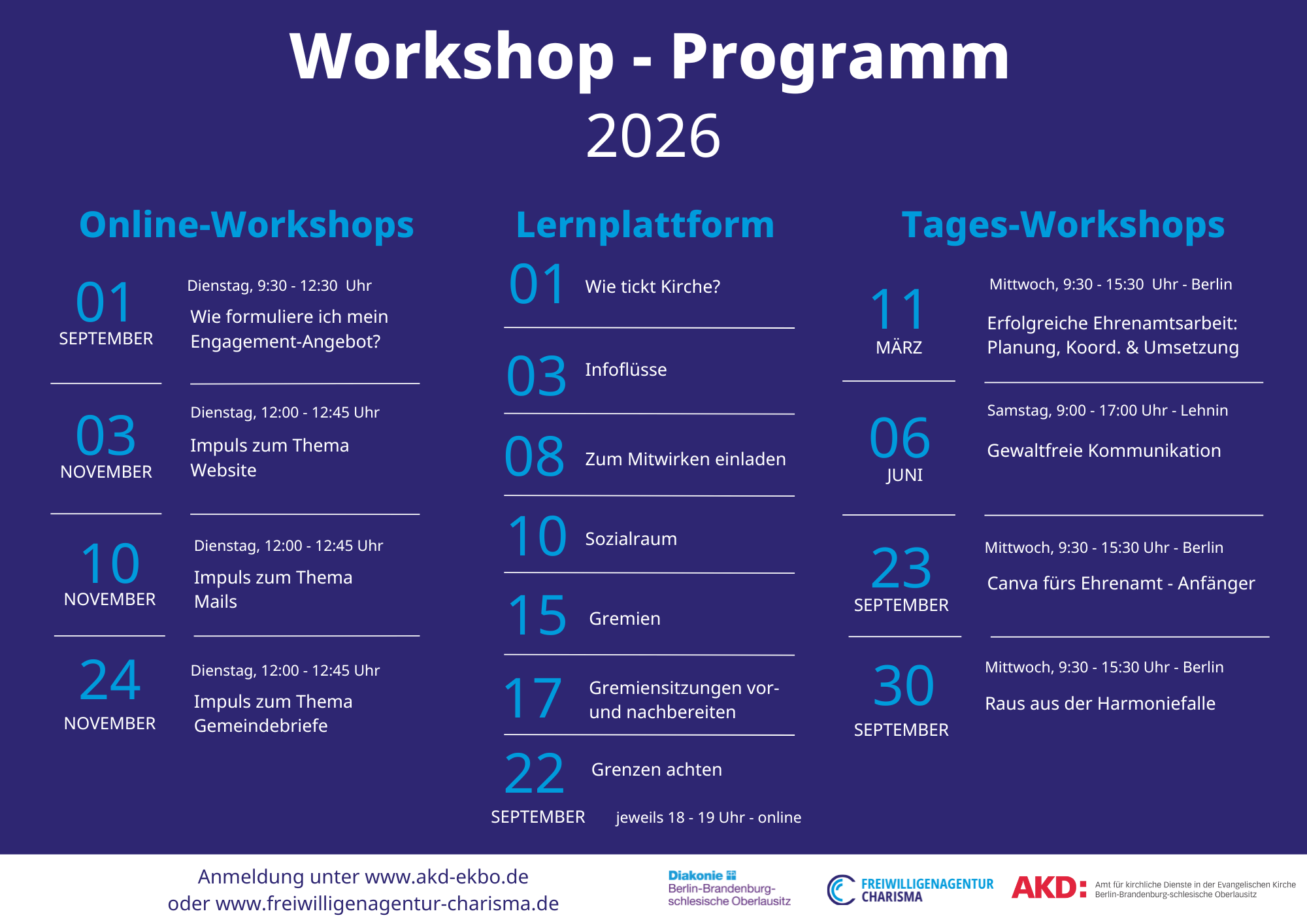 Ein gemeinsamer Workshop des AKD und der Freiwilligenagentur Charisma. Die Ehrenamtskoordination kann verschiedenste Aufgaben und Rollen in einer Organisation umfassen. Für eine erfolgreiche Zusammenarbeit mit Ehrenamtlichen ist es unerlässlich, diese Aufgaben zu kennen und mit ...